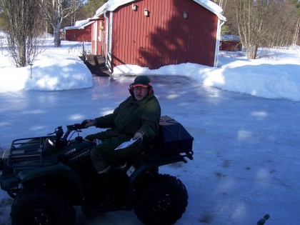 Vårtecknen börjar visa sig, ljuset har besegrat mörkret. Dagarna blir längre och längre. Solen värmer och snötäcket krymper, men istäcket på gården ligger fast. Tog mig en liten sparktur på vägen igår. Kände mig som” Bambi på hal is” benen spretade åt alla håll. Några veckor till så kanske stavarna åker fram. Ett annat säkert vårtecken är att grannen Ebbe tagit ut fyrhjulingen och som god granne hämtar han vår post så vi slipper halka runt på isen.