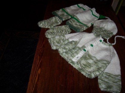 Vår fam går i väntans tider. En ny liten Människa ska se dagens ljus i början av April. Ett litet barnbarnsbarn. Jag har under vintermånaderna fördrivit tiden med att sticka en liten dress till den lille. Annars väntar vi på våren,värmen. Vi sitter fortfarande fast inomhus. Is och snö gör att vi kommer ingenstans utan att åka iväg med bilen. Men vi behöver motionera, promenera. Vi ser i allafall vårtecken, ”våra” skator har börjat bygga bo i tallarna på gården. Ivrigt flyger de omkring med kvistar i munnen.Om ”gammelmärka” står sig ,så blir det en regnig sommar. De bygger inte sina bon i toppen utan inuti träden längre ner. Men dagens storm gör så att dom får sig en vilodag.Har inte sett en enda skata idag. Ett annat vårtecken är att jag får upp altandörren. Den har varit igensnöad, men nu kan jag iallafall komma ut en liten bit. Andas vårluft i tidiga morronen. Vi har ljust nu redan kl 6.00. Det går framåt…
