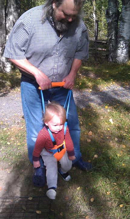 En annan bild som ger glädje ,är när barnbarnsbarnet Hardy med Boffas hjälp och specialsele,tar sina första steg på gräset. Att få vara med och leva i nuet med våra barn, barn barn, barnbarnsbarn är en underbar gåva.