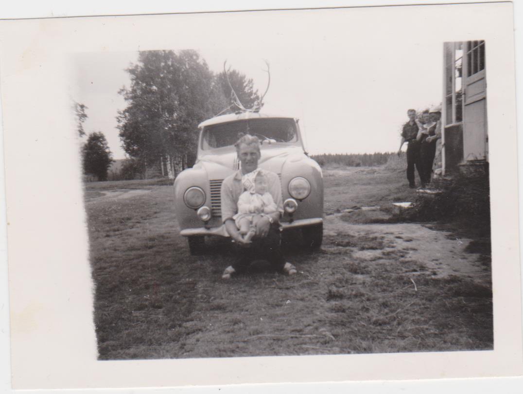Någonting annat som får mig att tänka på Tidevarv försvinna är när Kjells kusiner frågar efter kort på Kjells bror Singvall, som lämnat oss. Åren flyr och vi med dem. Hittade ett kort från Singvall och Violas bröllop, där en ung Kjell är Bestman. Det andra kortet är på Singvall och dottern Ann- Kristin fram för vår gemensamma bil. En Morris minor som hade tagit oss två fam. på semesterresa till Norge. Året var 1956.