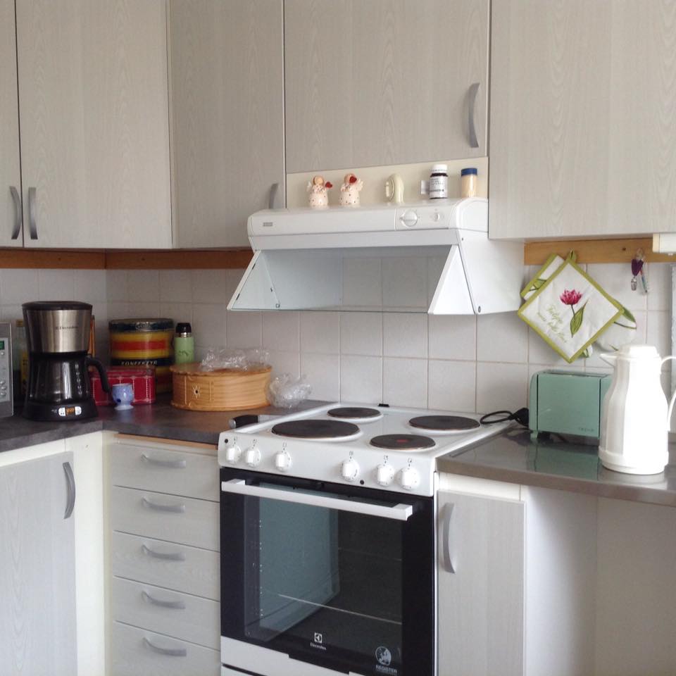 Efter månader av funderingar, frustreringar, ånger, och oro har vi nu kommit på plats. Det enda vi kan säga om det, är att det blev en positiv överraskning. En jättefin, ljus och trevlig tvåa. Ny målad och tapetserad, nya köksluckor , nya vitvaror, spis kyl, och frys, fläkt, allt har vi fått varit med och valt.