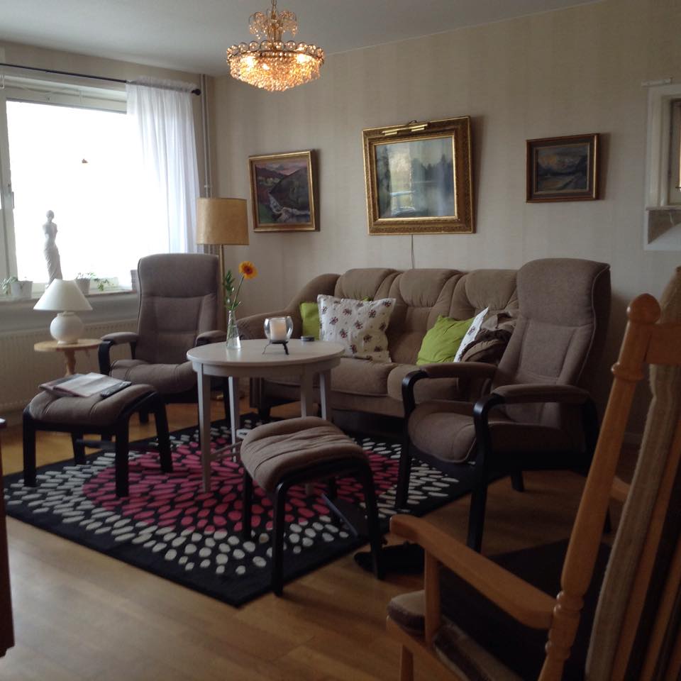 Våra underbara barn, barnbarn med respektive, har hjälpt till med flytten av möbler och det mesta. Fixat det praktiska, adresser, telefon, tv datorn m.m. Spikat, borrat satt upp tavlor, lampor etc. Vi har bara pekat , bestämt var vi vill ha våra saker.