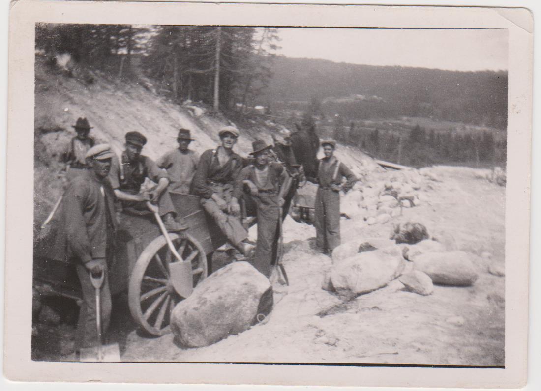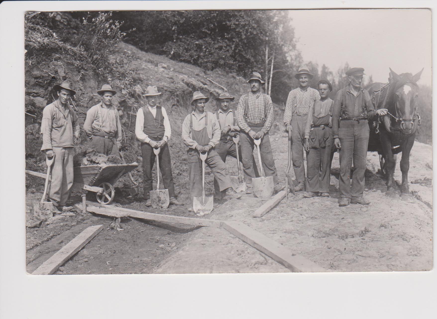Hittade några gamla kort som visar när vägen mellan Söderfors . Åsmon byggdes av AK arbetare på 1930-40talet. Vet ej hur länge de höll på , men arbetsutrustningen varnågot annorlunda även klädseln. Kjells pappa Hilding Häggkvist står som tredje från vänster på det ena kortet och två från höger på det andra. Vilka dom övriga är känner jag inte till. Men om någon vet , hör av er. Skulle vara roligt veta löneskillnaden mellan då och nu. Hästen användes för att forsla bort stenarna. Undrar också hur lång tid det tog att bygga vägen ? Den såg nog annorlunda ut då än vad den gör idag. Lånar Mors ordspråk igen /Döm komme fram döm såm körl vä oxn´å.