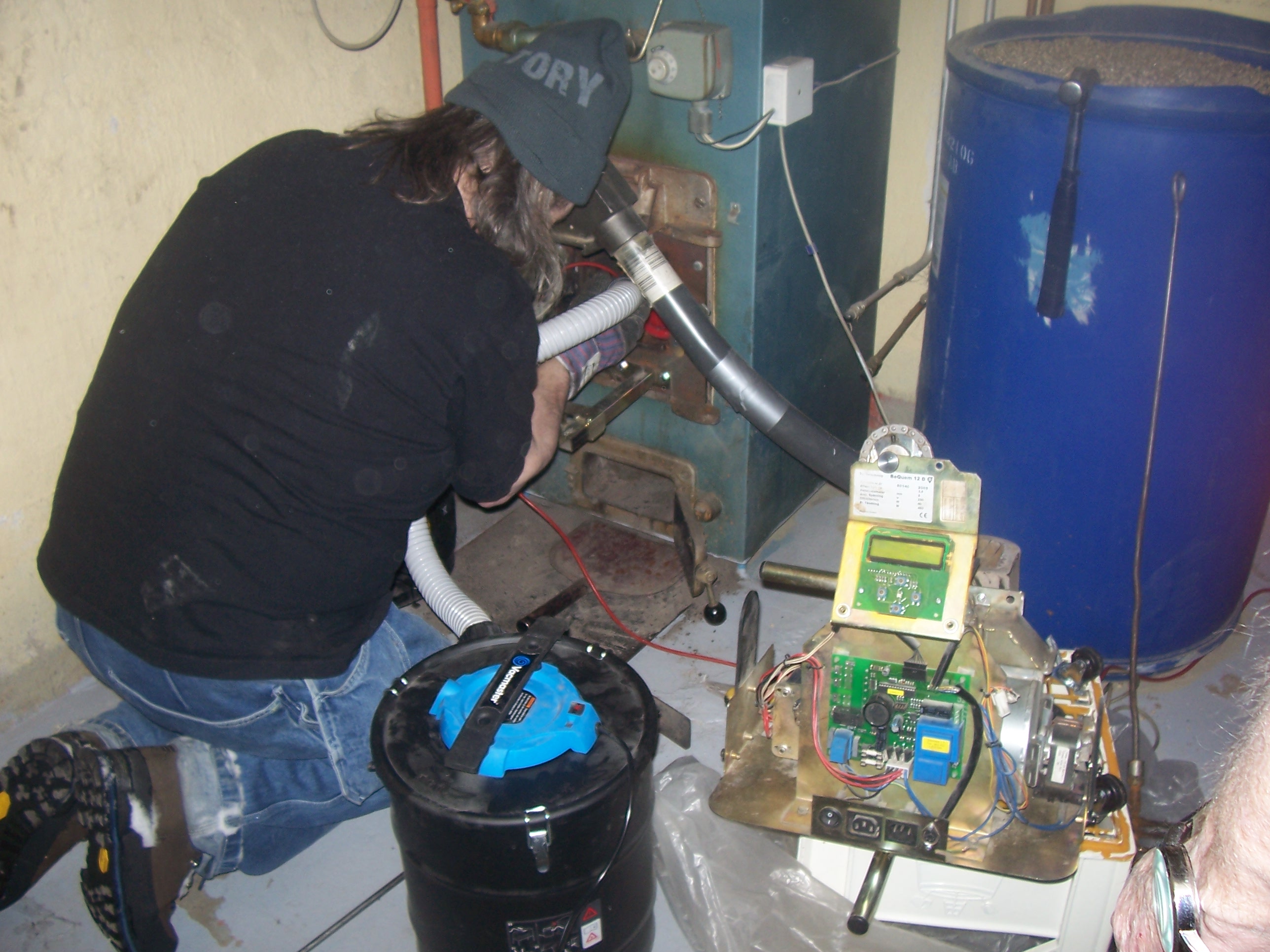 Tycker du inte det är kallt i huset ? frågar jag Kjell. Näe det är som vanligt,varmt och skönt. Efter en stund. Men visst luktar det sot ? Näee du måste va sjuk. Jag ger mig inte, går och känner på elementen. Elementen är ju iskalla, pannan måste ha stannat Kjell!. Öppnar dörren till källarvåningen, det är rökfyllt därnere, pannan står och puffar rök. Nu blir det fart på gubben. Jag måste stänga och sota pannan ikväll, Så börjar operation pelletspanna. Kjell fixar inte det nu, Jonnie brukar komma hem och hjälpa oss. Så står vi där två ”gammelstäckarra och blöttes” Madde ringer, jag berättar vad vi håller på med. Hon skickar ner Jonnie till oss. Han kommer som en räddande ängel, pannan är igång igen. Värmen sprider sig i huset, Vi kan andas ut, allt gick bra den här gången också. Men tanken för oss närmare och närmare en flytt hemifrån…