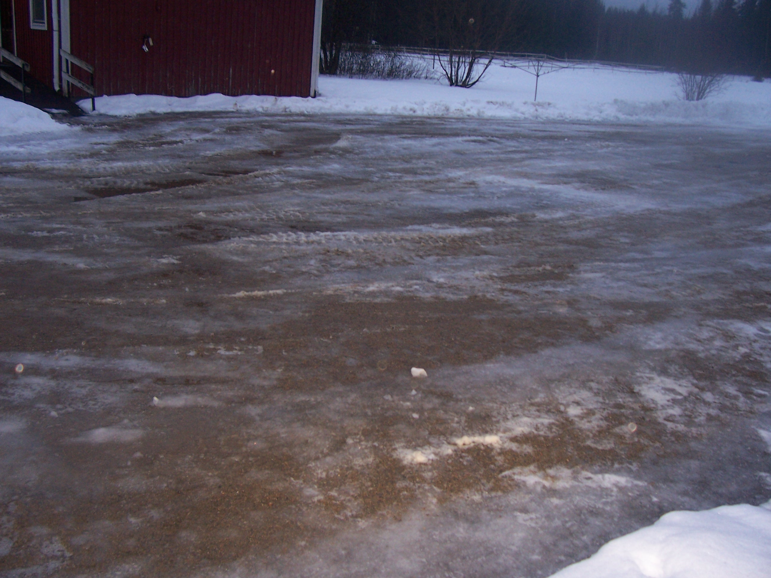 Men vilket märkligt väder vi har, 0 gradigt blötsnö. Traktorn var här och skottade upp stora drivor i morse. I kväll har nästan allt regnat bort, gården ser ut som en sjö. Även där har vi tur att OS underhåller oss, vi slipper gå ut.